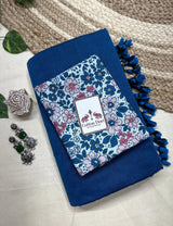 48% OFFMake a graceful statement with this stunning Midnight Blue Handloom Cotton Saree, paired beautifully with a flower-printed blouse piece. Woven from pure cotton by skilled artisans, this saree blends traditional craftsmanship with timeless elegance.