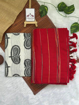 49% OFFThis rose red cotton handloom saree is a perfect blend of vibrant color and traditional craftsmanship. The soft cotton fabric feels comfortable and breathable, while the handloom texture adds a subtle richness to the saree. It comes paired with a beautifully printed blouse that complements the saree’s elegance with delicate patterns. Together, they create a graceful and timeless outfit ideal for festive occasions or casual wear. This combination highlights classic style with a fresh, artistic touch.