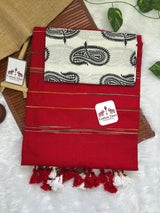 Rose red cotton handloom saree with beautiful printed blouse