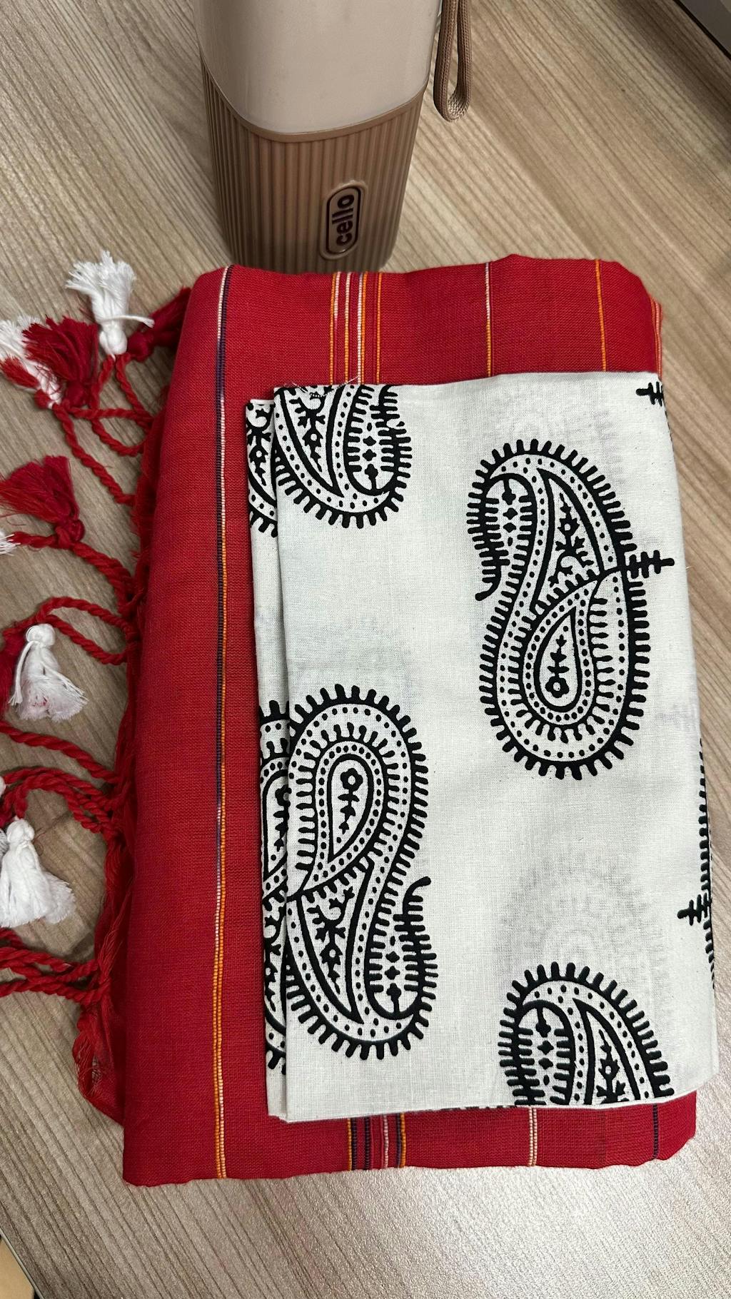 This rose red cotton handloom saree is a perfect blend of vibrant color and traditional craftsmanship. The soft cotton fabric feels comfortable and breathable, while the handloom texture adds a subtle richness to the saree. It comes paired with a beautifully printed blouse that complements the saree’s elegance with delicate patterns. Together, they create a graceful and timeless outfit ideal for festive occasions or casual wear. This combination highlights classic style with a fresh, artistic touch.