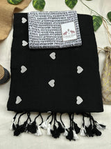 42% OFFMake a striking impression with this deep black cotton handloom saree, crafted from soft, breathable cotton that drapes effortlessly. The bold black color is beautifully contrasted by a crisp white printed blouse, creating a classic and elegant combination. Perfect for festive occasions, casual events, or traditional gatherings, this saree blends timeless handloom craftsmanship with modern sophistication.