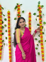 Beautiful Pink Cotton Handloom Saree With Printed Blouse