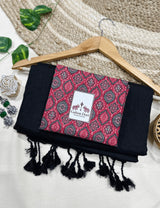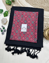 Premium Handloom Cotton Saree - Charcoal black saree with beautiful printed blouse
