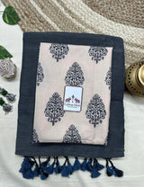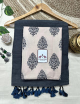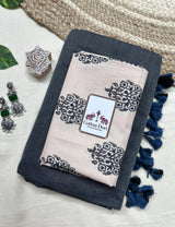 48% OFFAdd effortless sophistication to your wardrobe with this Dim Grey Cotton Saree, beautifully paired with a cream printed blouse. Made from 100% pure cotton and handwoven by skilled artisans, this saree offers a perfect combination of comfort, tradition, and modern elegance.