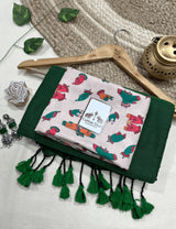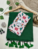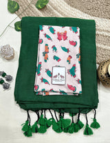 Premium Handloom Cotton Saree - Emerald Green handloom cotton saree with cream printed blouse