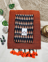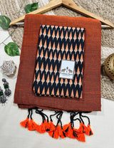 Premium Handloom Cotton Saree - Georgeous orange handloom cotton saree with black printed blouse