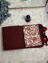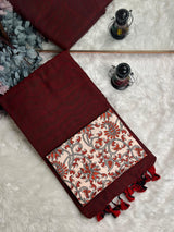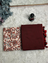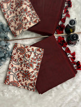 Premium Handloom Cotton Saree - Cherry wine saree with cream flower printed blouse