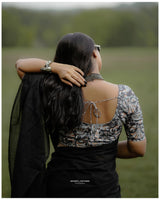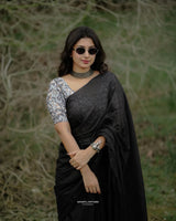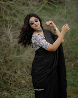 Pure Cotton Black Handloom Saree With Beautiful Printed Blouse
