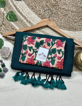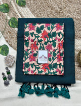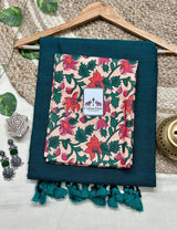 48% OFFA Rama green cotton handloom saree paired with a flower printed blouse is a beautiful blend of elegance, comfort, and tradition. The Rama green shade — a rich teal-toned green — gives the saree a graceful yet earthy feel, perfect for daytime functions, festive events, or office ethnic wear. The use of cotton handloom fabric ensures breathability and comfort, while also supporting artisanal craftsmanship. The saree may feature minimal zari, contrast borders, or temple-style edging, keeping the overall look classy yet grounded. Paired with a floral printed blouse