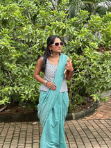 Sky Blue Cotton Handloom Saree With Georgous Printed Blouse