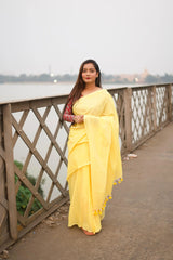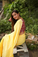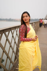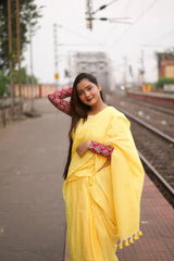 54% OFFThis yellow cotton handloom saree combines traditional craftsmanship with contemporary style. The breathable cotton fabric ensures comfort, while the vibrant yellow hue adds a cheerful touch to your wardrobe. Paired with a delicately floral printed blouse, this ensemble offers a perfect balance of elegance and freshness, ideal for both casual and festive occasions. The handloom weave highlights artisanal quality, making it a timeless addition to your collection.