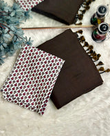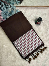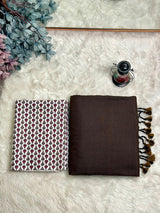 Premium Handloom Cotton Saree - Earthy brown saree with white printed blouse