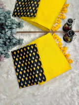 Premium Handloom Cotton Saree - Lemon yellow saree with black printed blouse