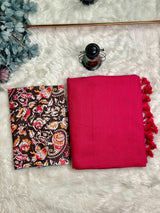 Premium Handloom Cotton Saree - Cherry red saree with black printed blouse