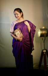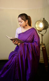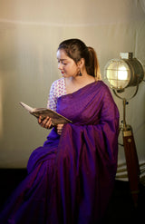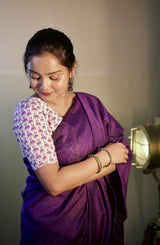 Purple cotton handloom saree with floral printed blouse