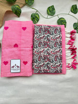 Rose pink cotton handloom saree with kalamkari printed blouse