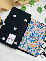 42% OFFDiscover classic elegance with this true black cotton handloom saree, woven from soft, breathable cotton for a comfortable and graceful drape. The deep black shade offers timeless sophistication, beautifully balanced by a grey flower printed blouse that adds a subtle touch of femininity and charm. Perfect for both casual gatherings and festive occasions, this saree combines traditional handloom artistry with modern, understated style.